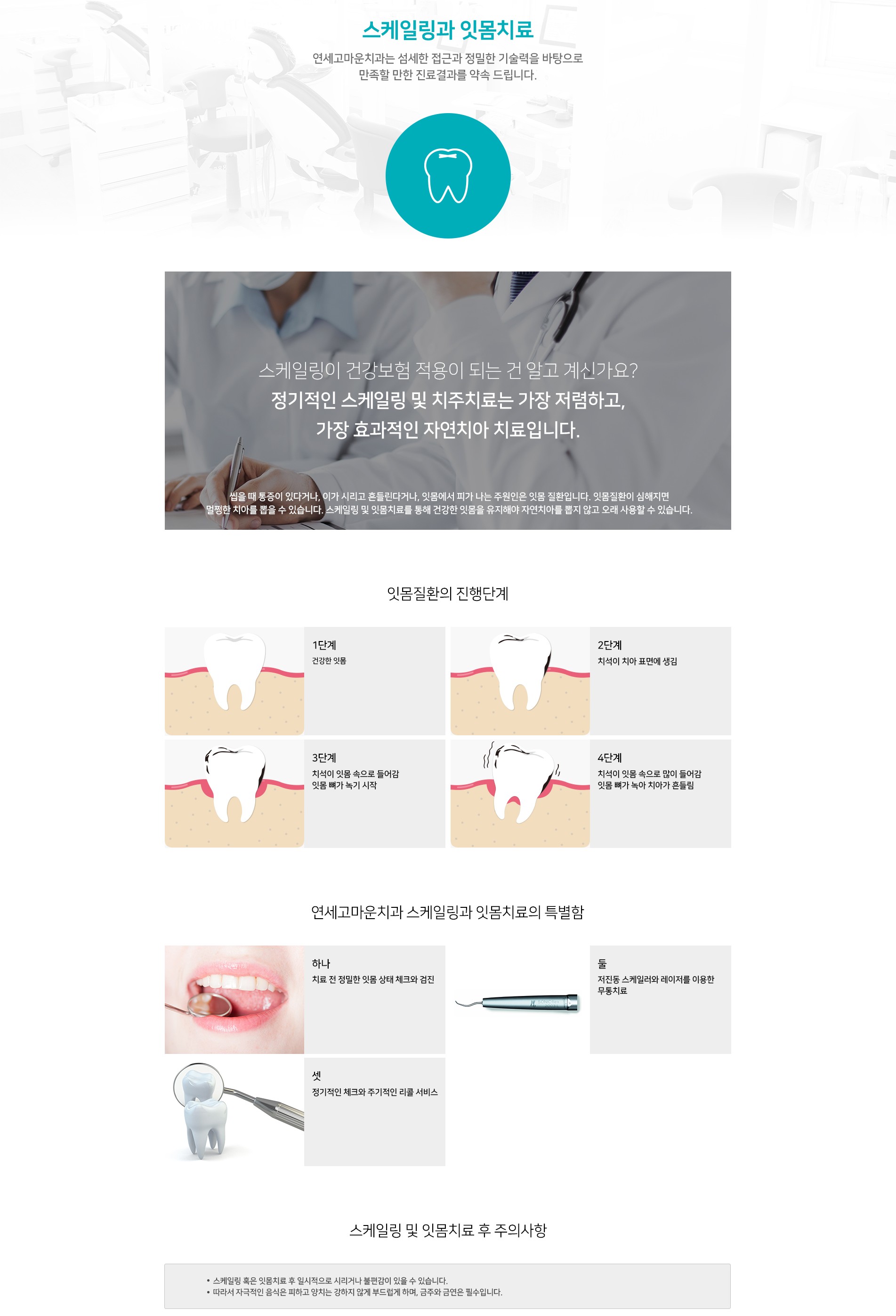 잇몸치료는 치석과 염증을 제거해 잇몸 건강을 회복하고 치아를 지키는 기본 치료입니다.출혈·붓기·입 냄새의 원인을 근본적으로 개선합니다.정기적인 치료와 관리로 치주질환 진행을 예방할 수 있습니다.