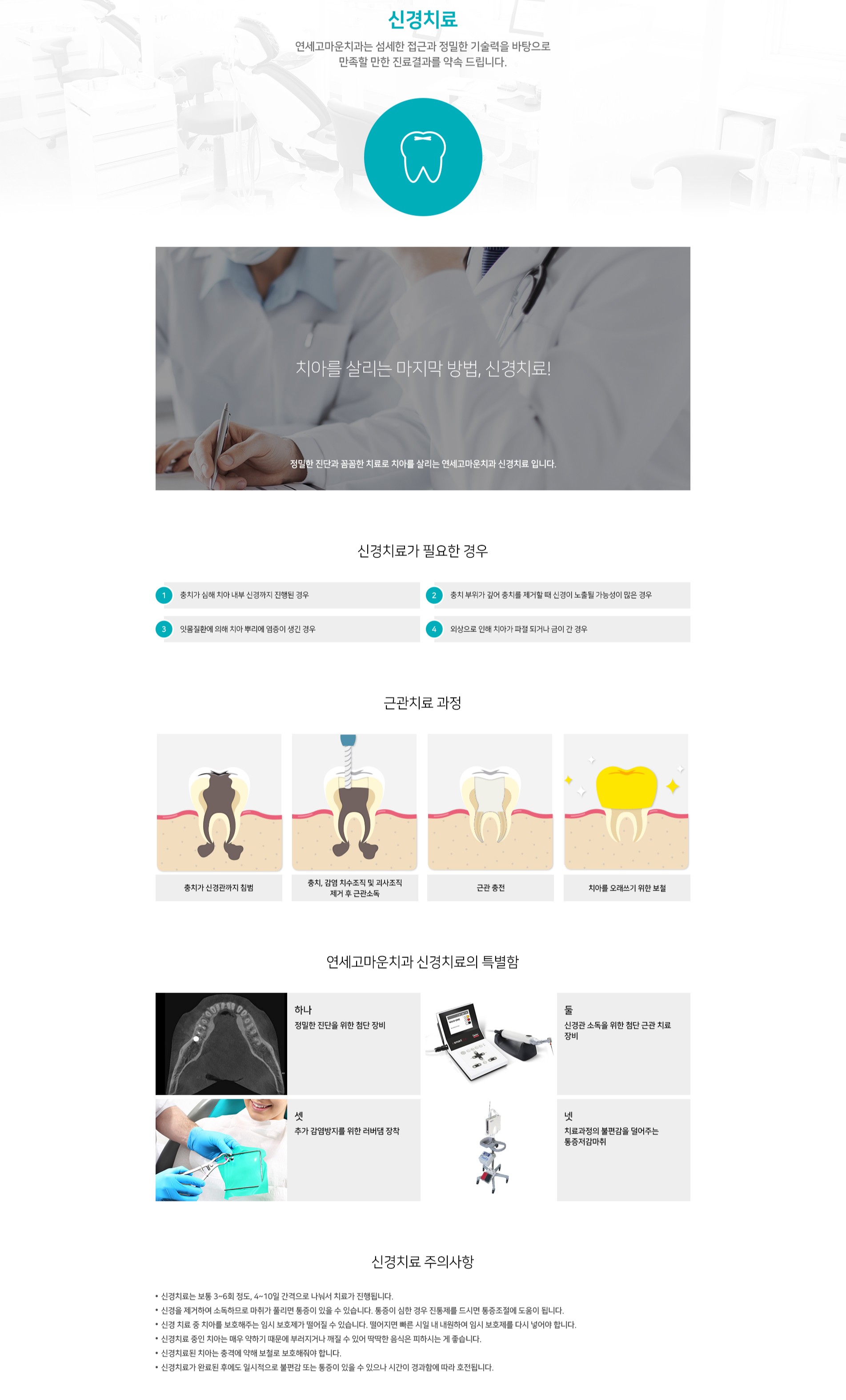 충치가 심해 치아 내부 신경까지 진행된 경우, 충치를 제거할 때 신경이 노출될 가능성이 많은 경우, 치아 뿌리에 염증이 생긴 경우, 외상으로 인해 치아가 파절되거나 금이 간 경우 진행되는 치료입니다 .