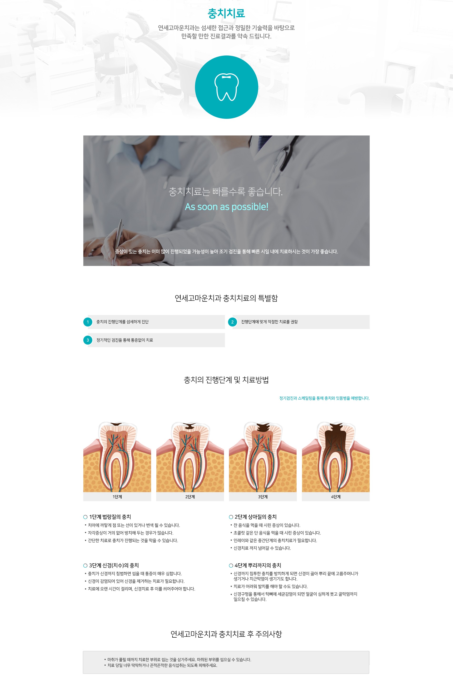 충치의 진행단계를 섬세하게 진단하여, 진행 단계에 맞게 적절한 치료를 권합니다. 무통마취 후 치아를 최소 삭제하여 보존적으로 충치를 제거합니다.